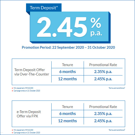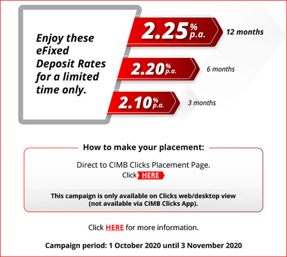 马来西亚各家银行继续在2020年10月份继续推出定期存款的促销,鼓励大家存款。